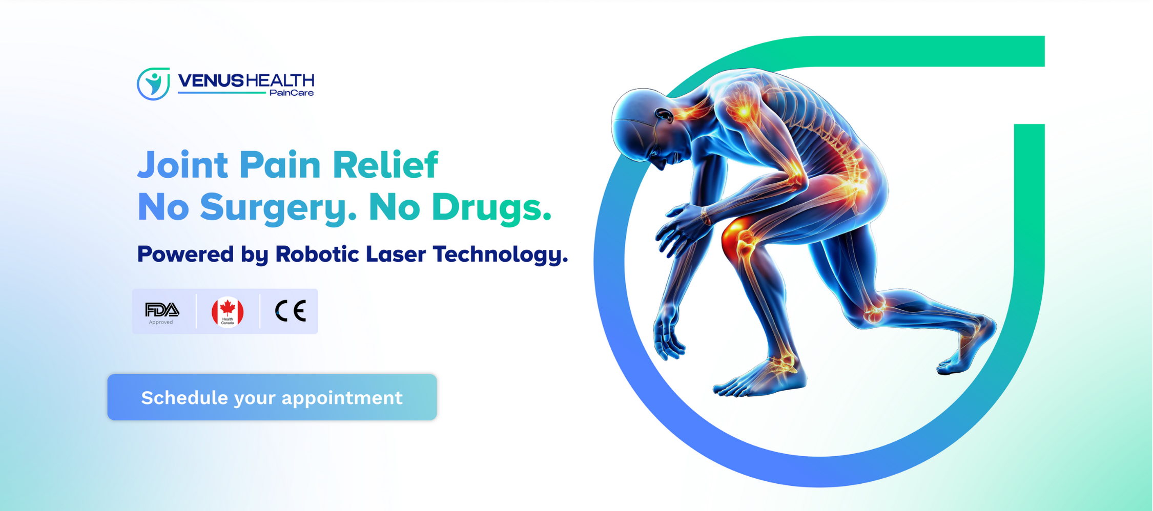 Venus Health is a pioneer in non-surgical pain laser therapy with modern clinics in both Lahore and Gujranwala. Our expert medical teams use cutting-edge, FDA-approved robotic laser technology to provide non-invasive pain treatment for a wide variety of conditions. Whether you are struggling with chronic back pain, joint pain, sports injuries, or muscle discomfort, our specialized laser therapy for pain relief is designed to speed up healing, reduce inflammation, and restore mobility—without surgery or medication.